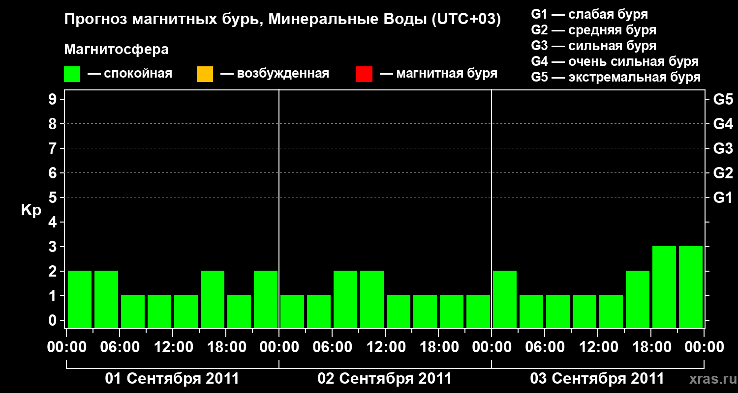 Прогноз магнитных бурь Минеральных Водах — 1 сентября 2011 года