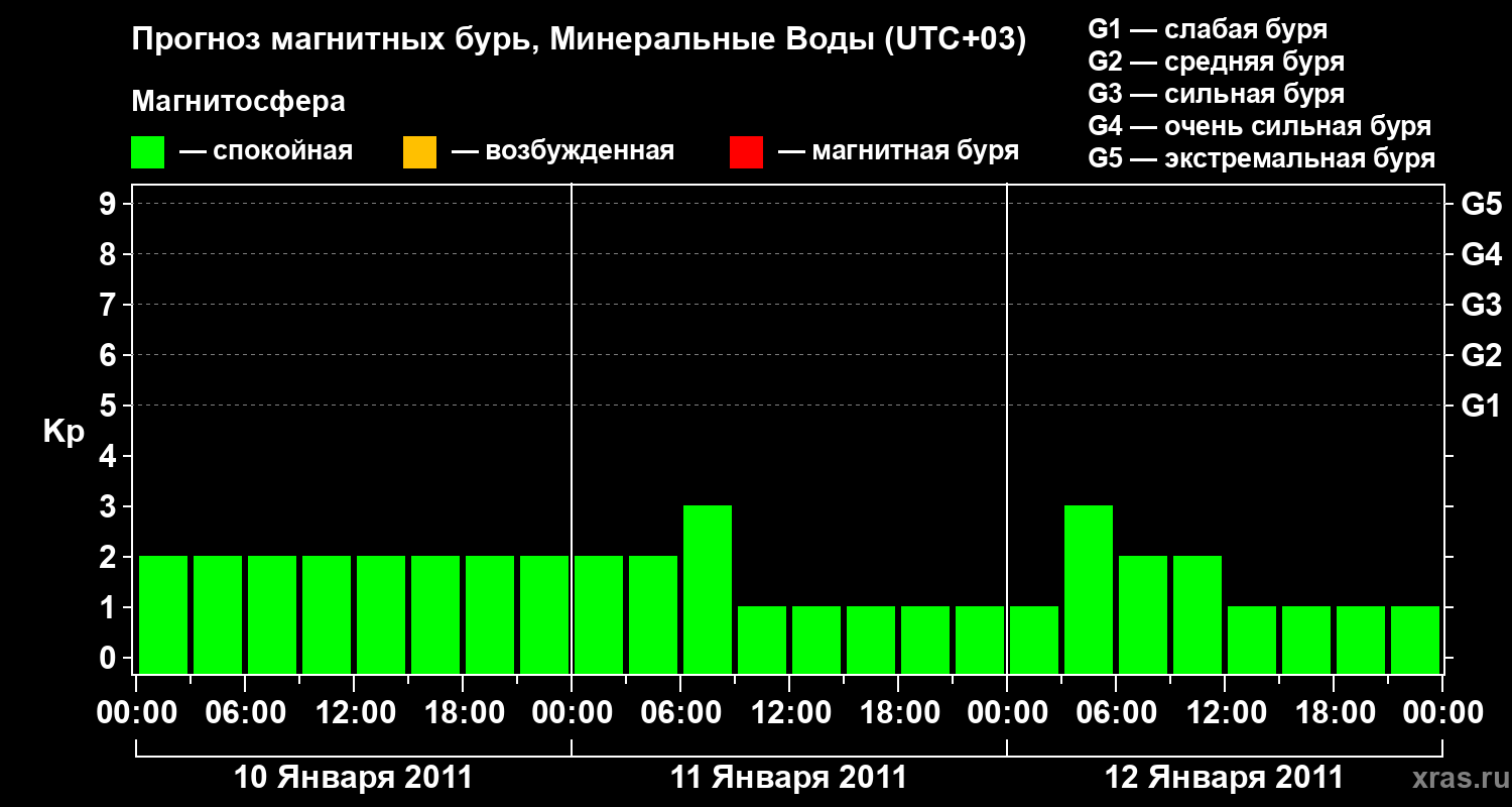 Прогноз магнитных бурь Минеральных Водах — 10 января 2011 года