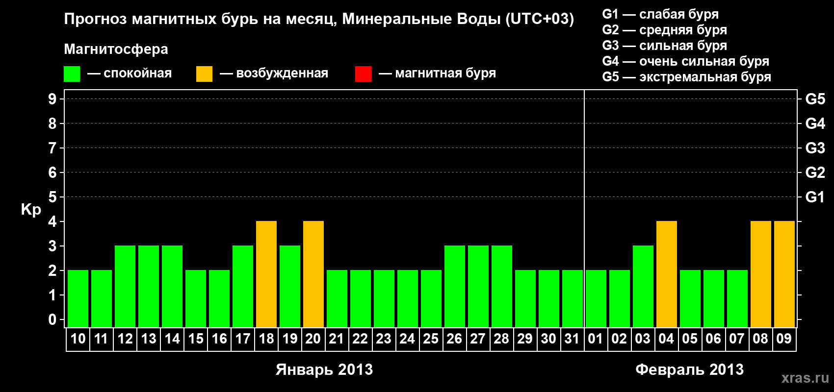 Прогноз магнитных бурь Минеральных Водах — 10 января 2013 года