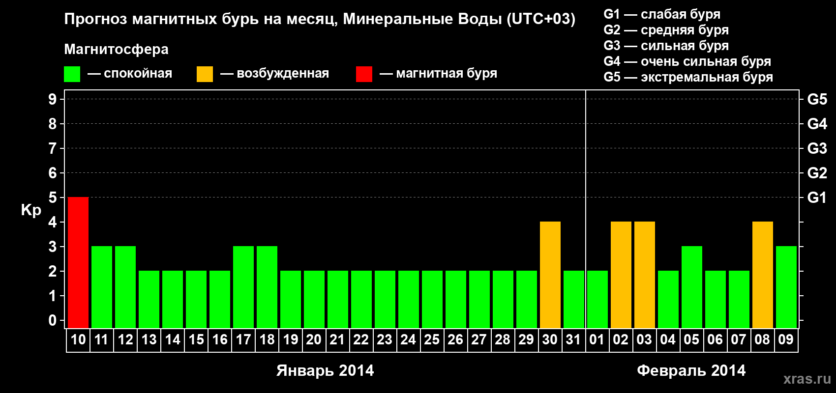 Прогноз магнитных бурь Минеральных Водах — 10 января 2014 года