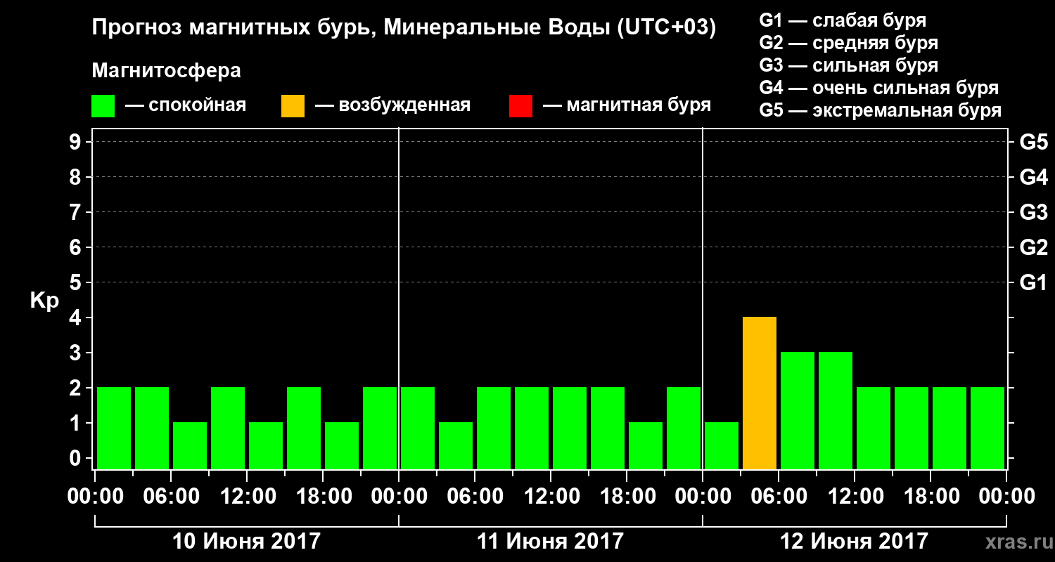Прогноз магнитных бурь Минеральных Водах — 10 июня 2017 года