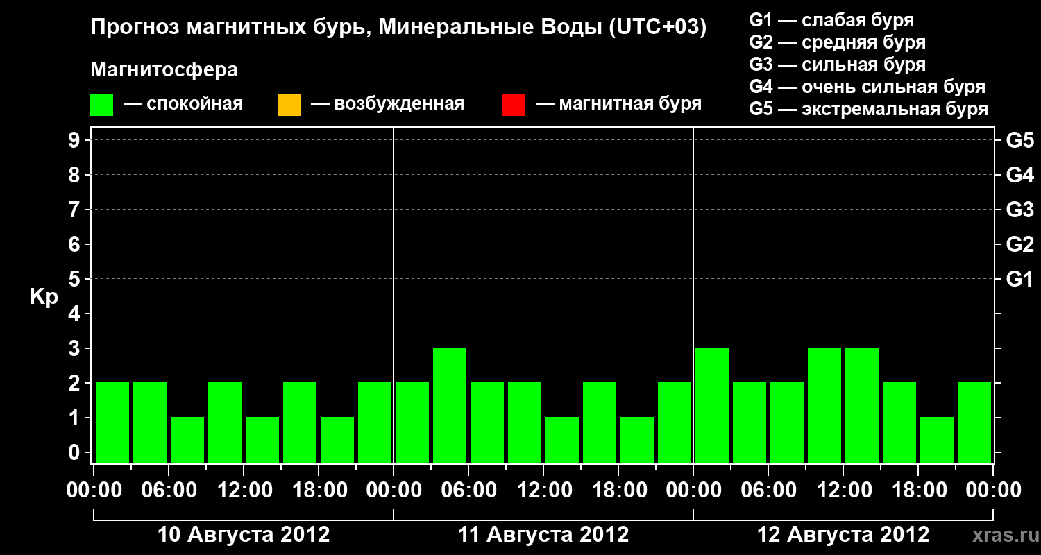 Прогноз магнитных бурь Минеральных Водах — 10 августа 2012 года