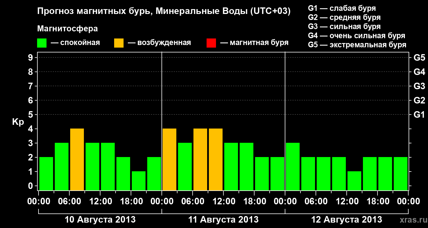 Прогноз магнитных бурь Минеральных Водах — 10 августа 2013 года