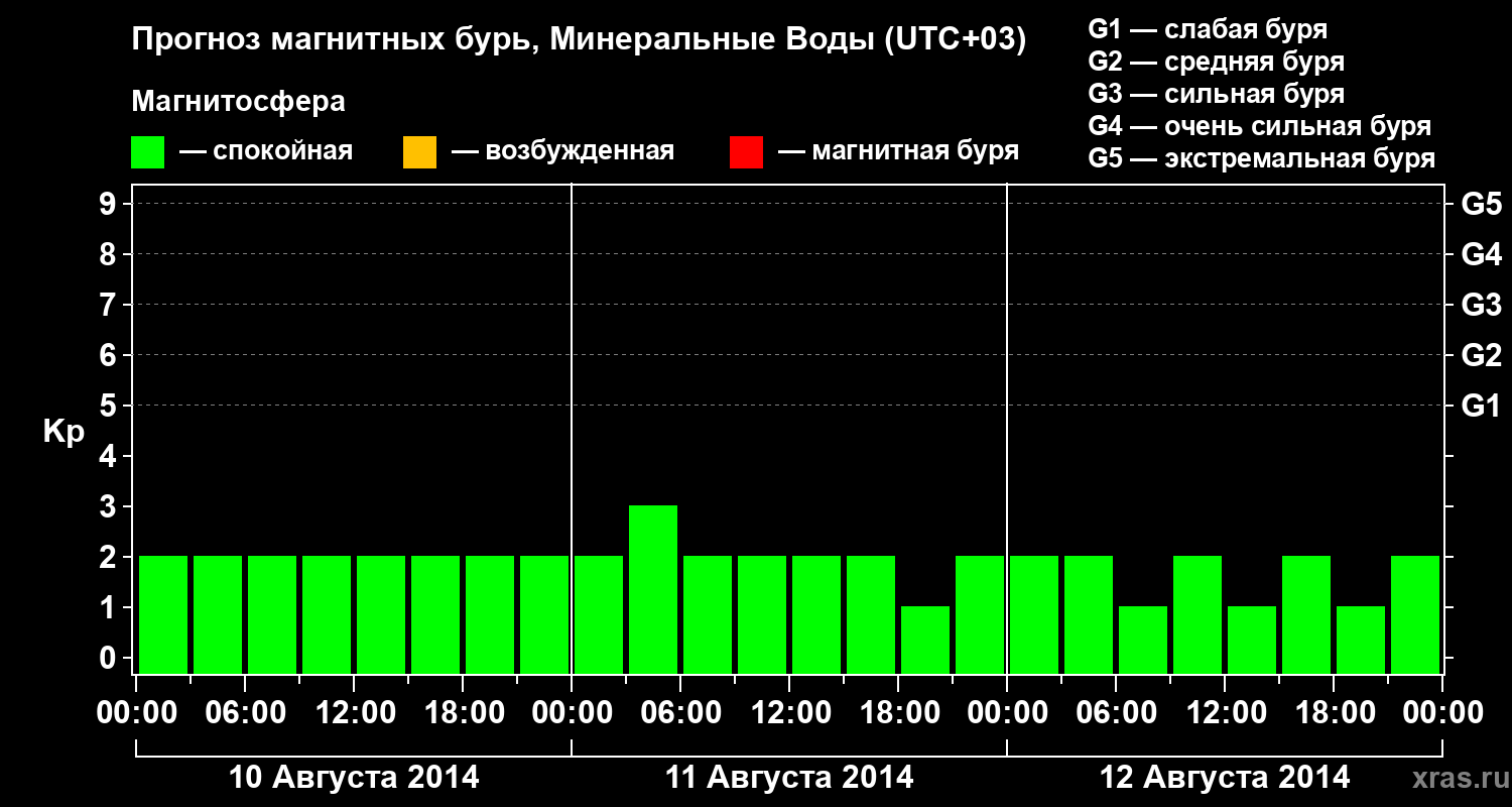 Прогноз магнитных бурь Минеральных Водах — 10 августа 2014 года