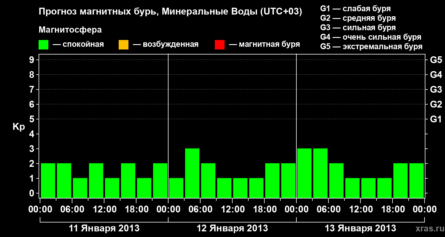 Прогноз магнитных бурь Минеральных Водах — 11 января 2013 года