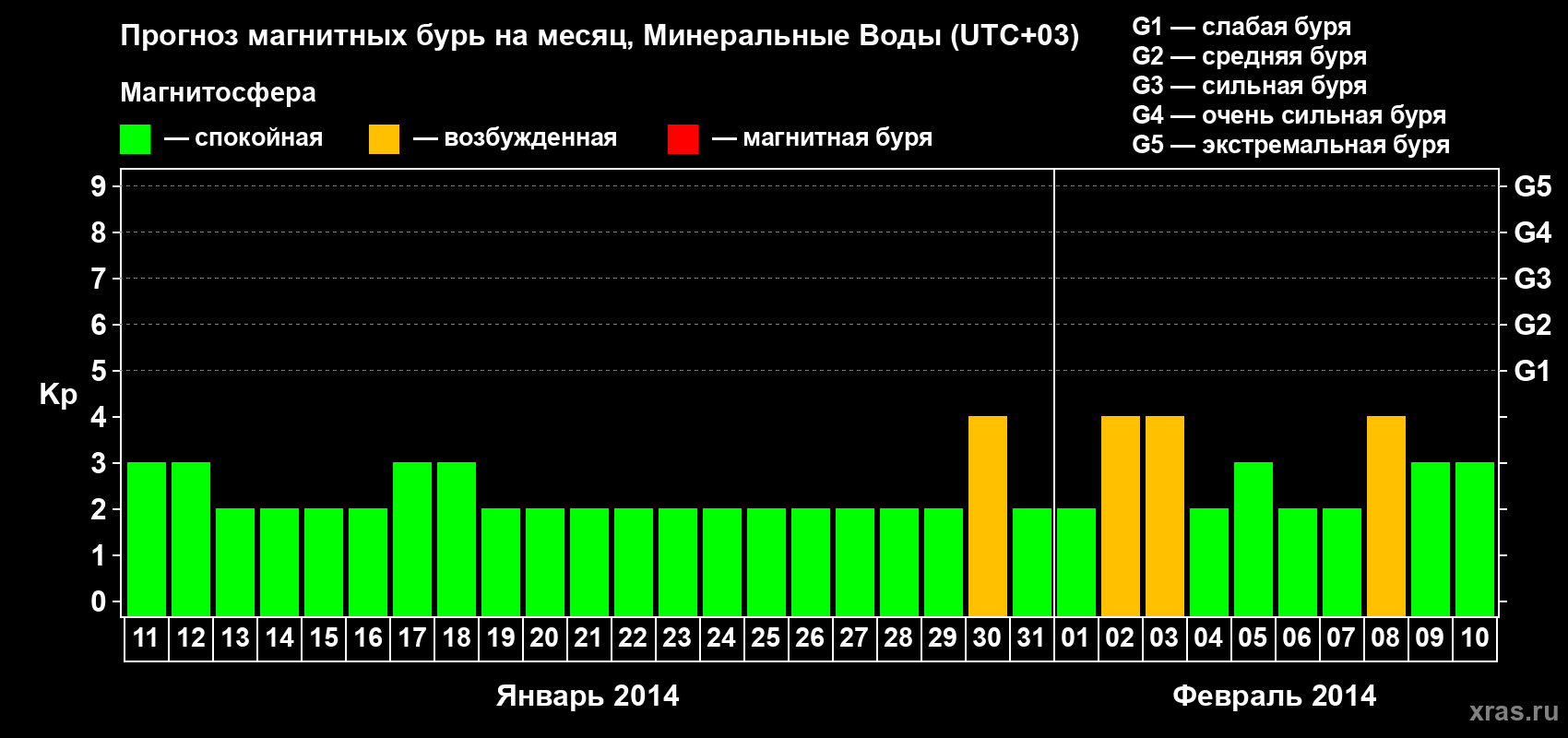 Прогноз магнитных бурь Минеральных Водах — 11 января 2014 года