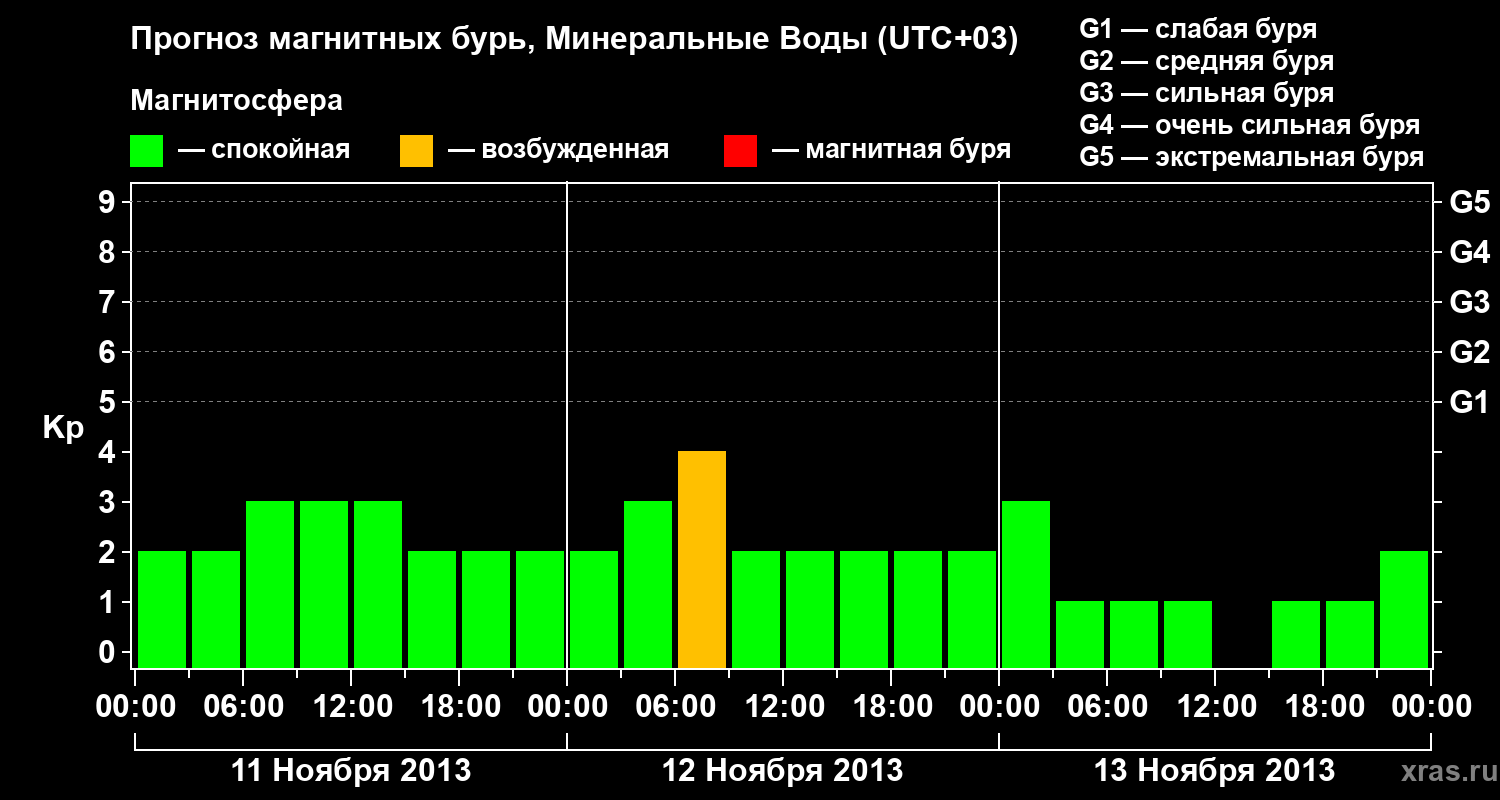 Прогноз магнитных бурь Минеральных Водах — 11 ноября 2013 года