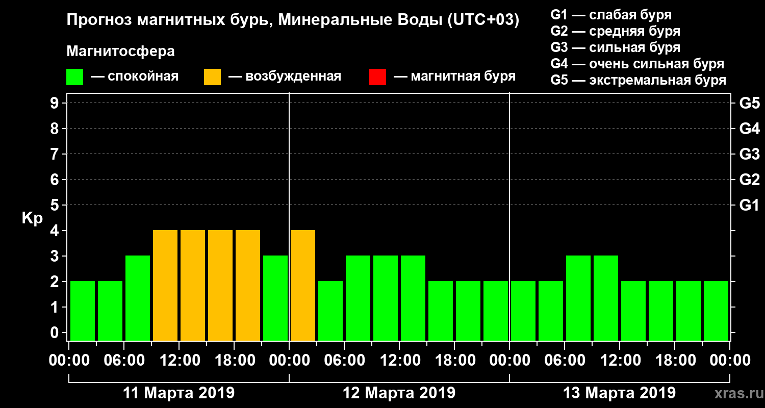 Прогноз магнитных бурь Минеральных Водах — 11 марта 2019 года