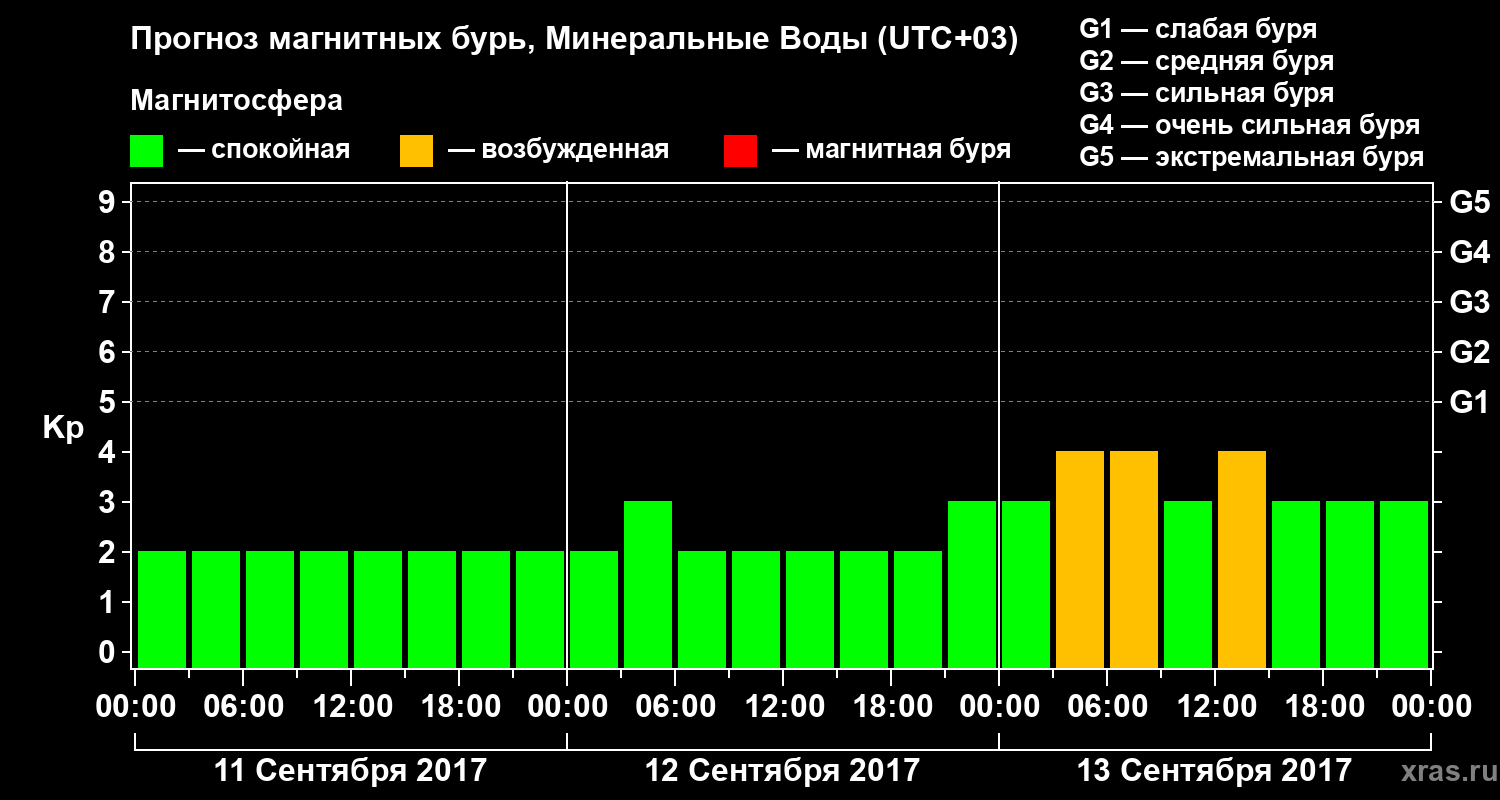 Прогноз магнитных бурь Минеральных Водах — 11 сентября 2017 года