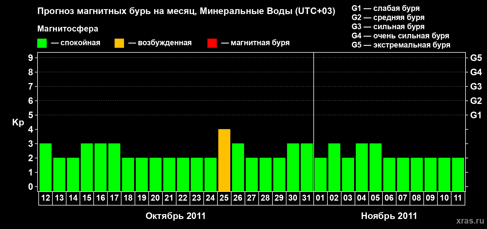 Прогноз магнитных бурь Минеральных Водах — 12 октября 2011 года
