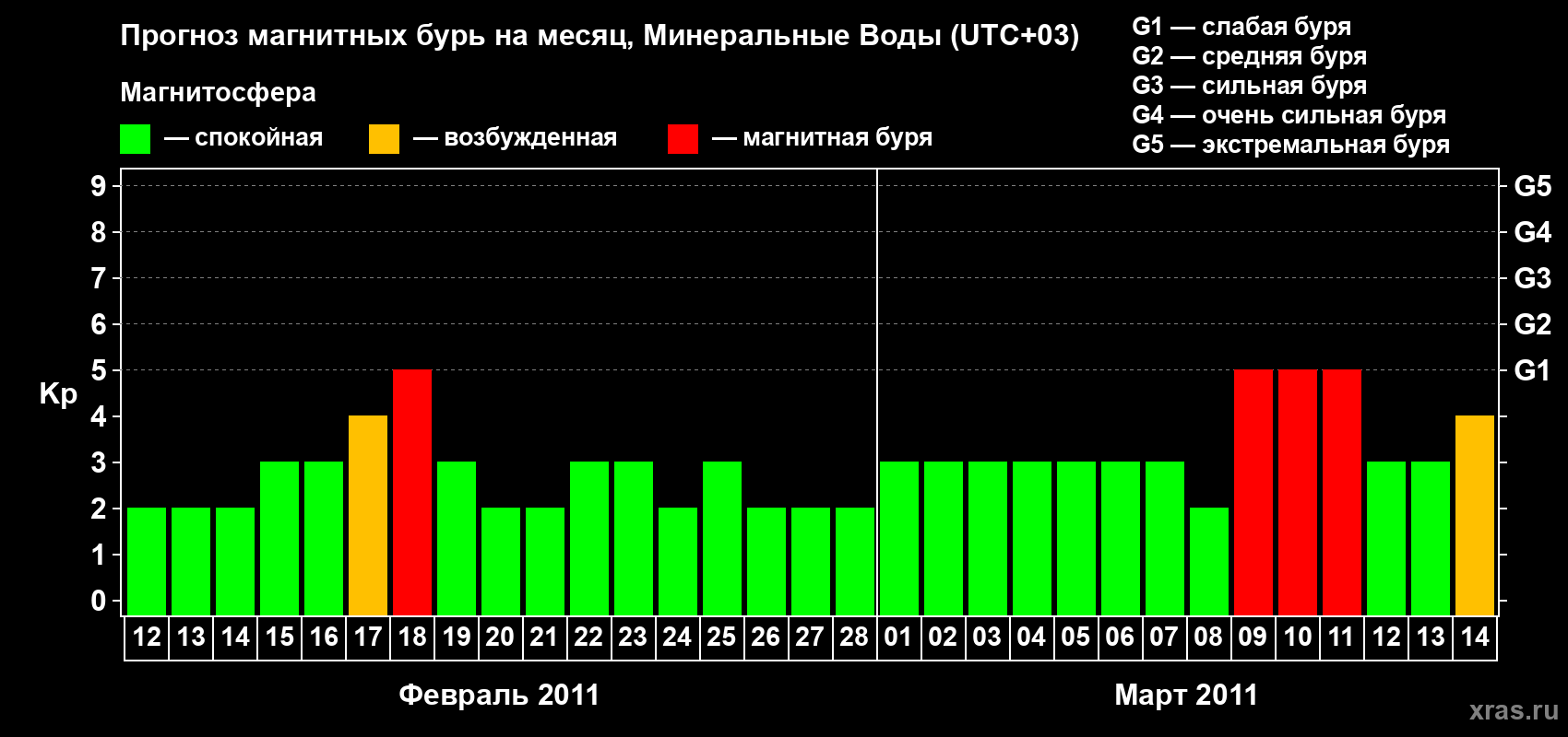 Прогноз магнитных бурь Минеральных Водах — 12 февраля 2011 года