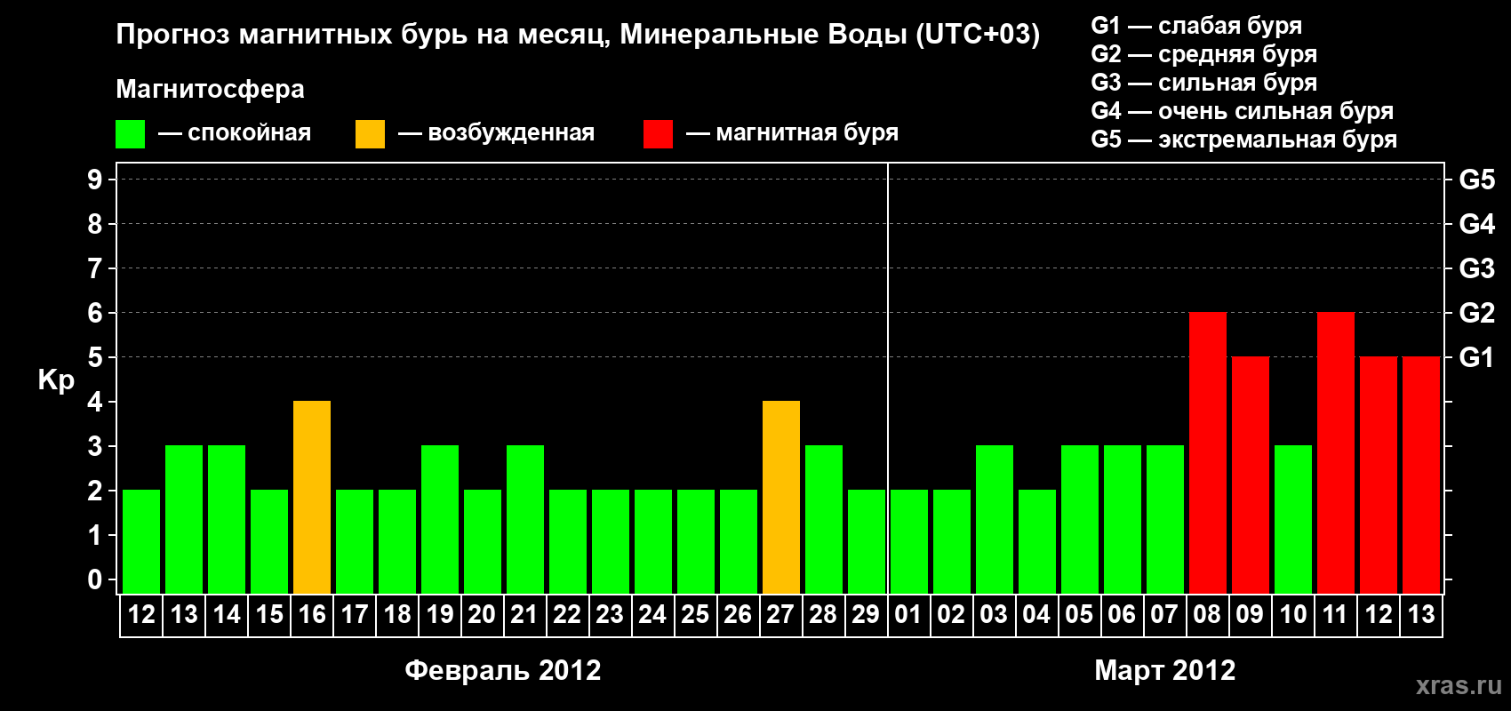 Прогноз магнитных бурь Минеральных Водах — 12 февраля 2012 года