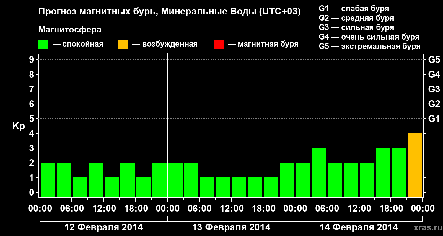 Прогноз магнитных бурь Минеральных Водах — 12 февраля 2014 года