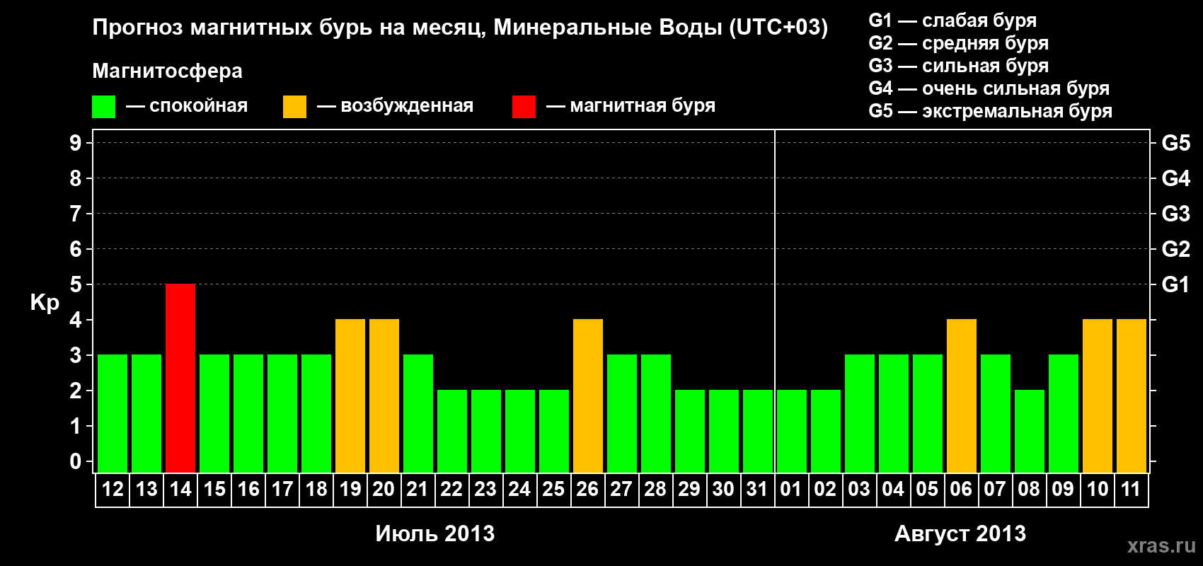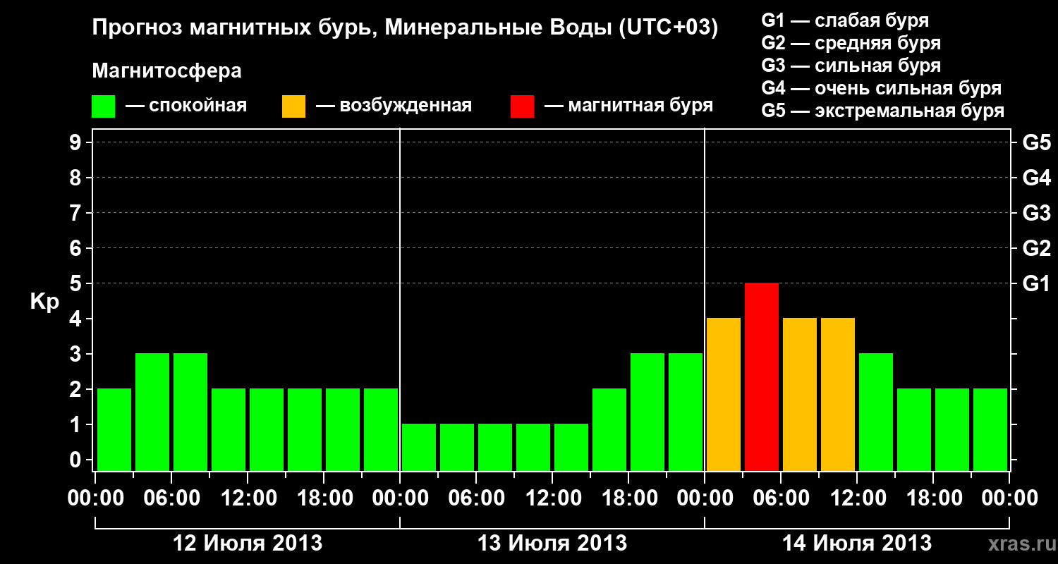 Прогноз магнитных бурь Минеральных Водах — 12 июля 2013 года