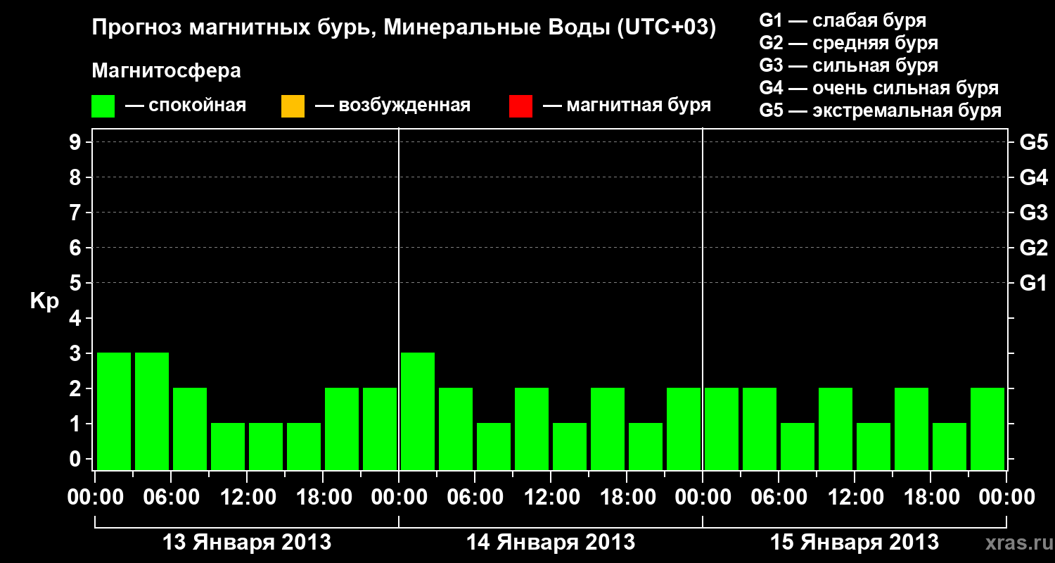Прогноз магнитных бурь Минеральных Водах — 13 января 2013 года