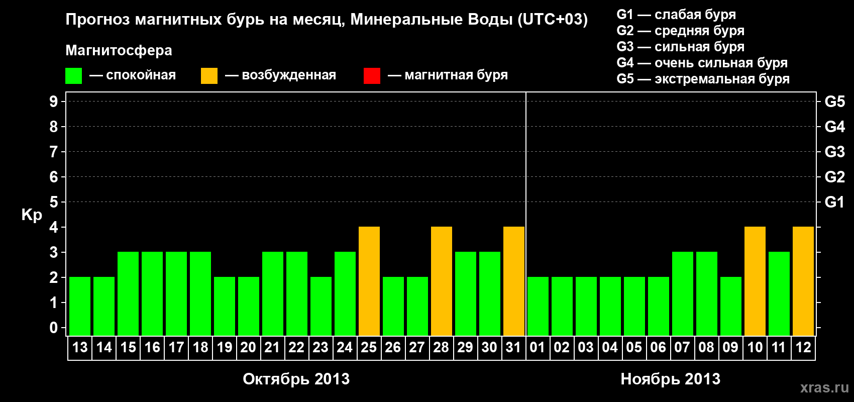 Прогноз магнитных бурь Минеральных Водах — 13 октября 2013 года