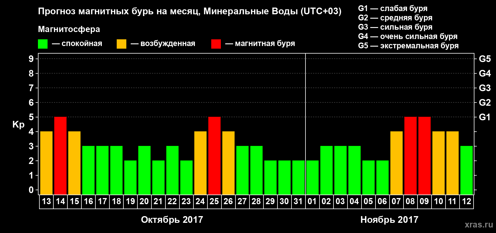 Прогноз магнитных бурь Минеральных Водах — 13 октября 2017 года