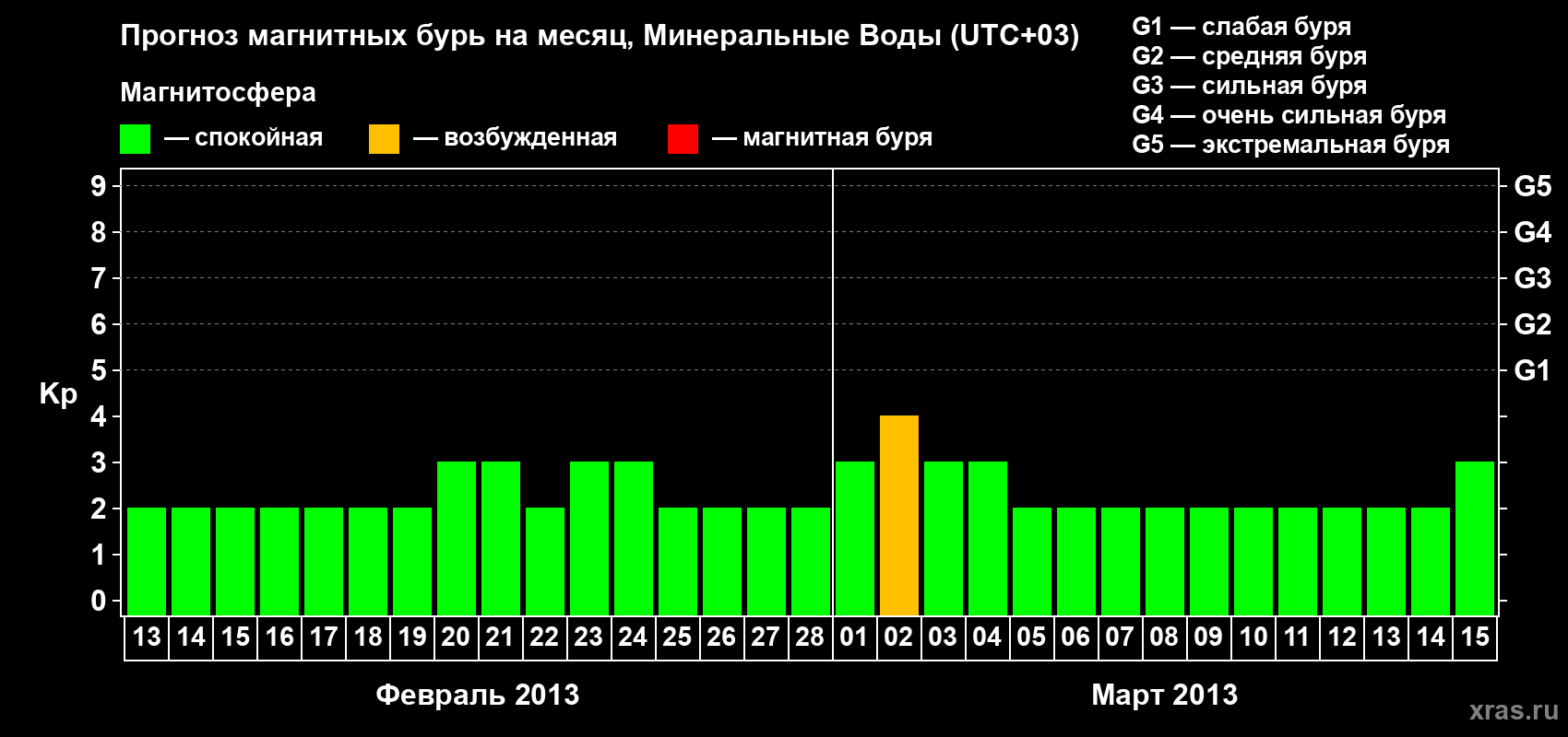 Прогноз магнитных бурь Минеральных Водах — 13 февраля 2013 года