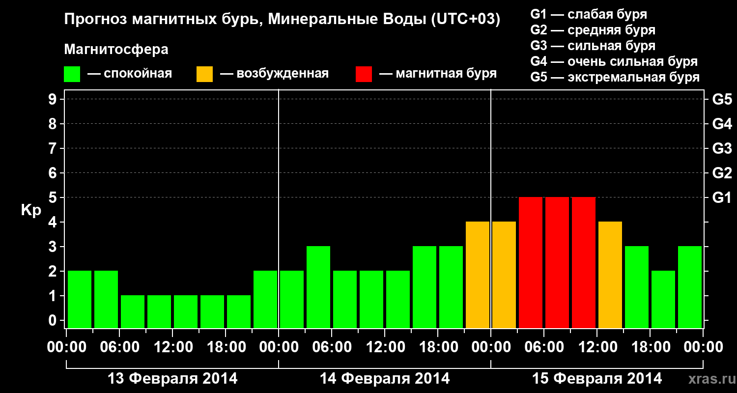 Прогноз магнитных бурь Минеральных Водах — 13 февраля 2014 года
