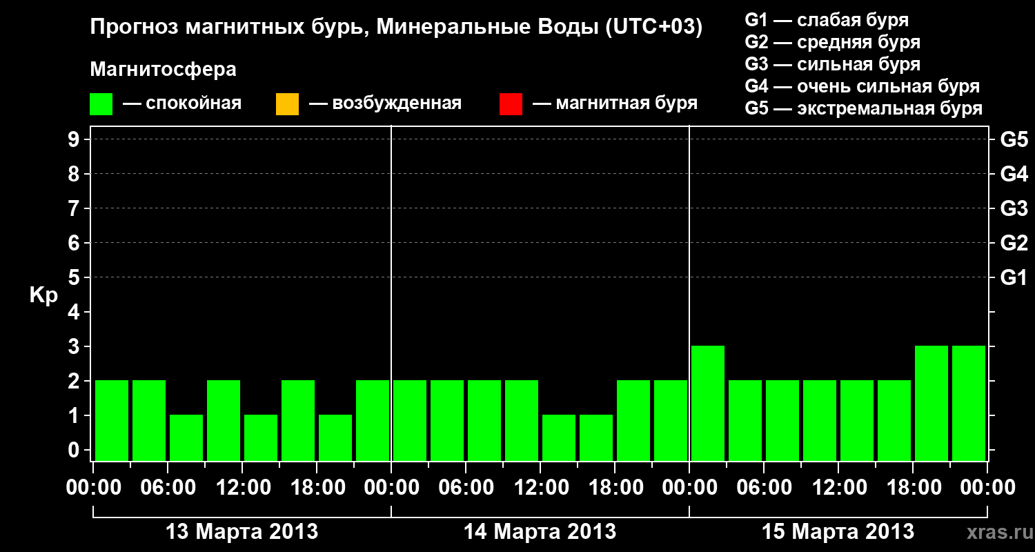 Прогноз магнитных бурь Минеральных Водах — 13 марта 2013 года