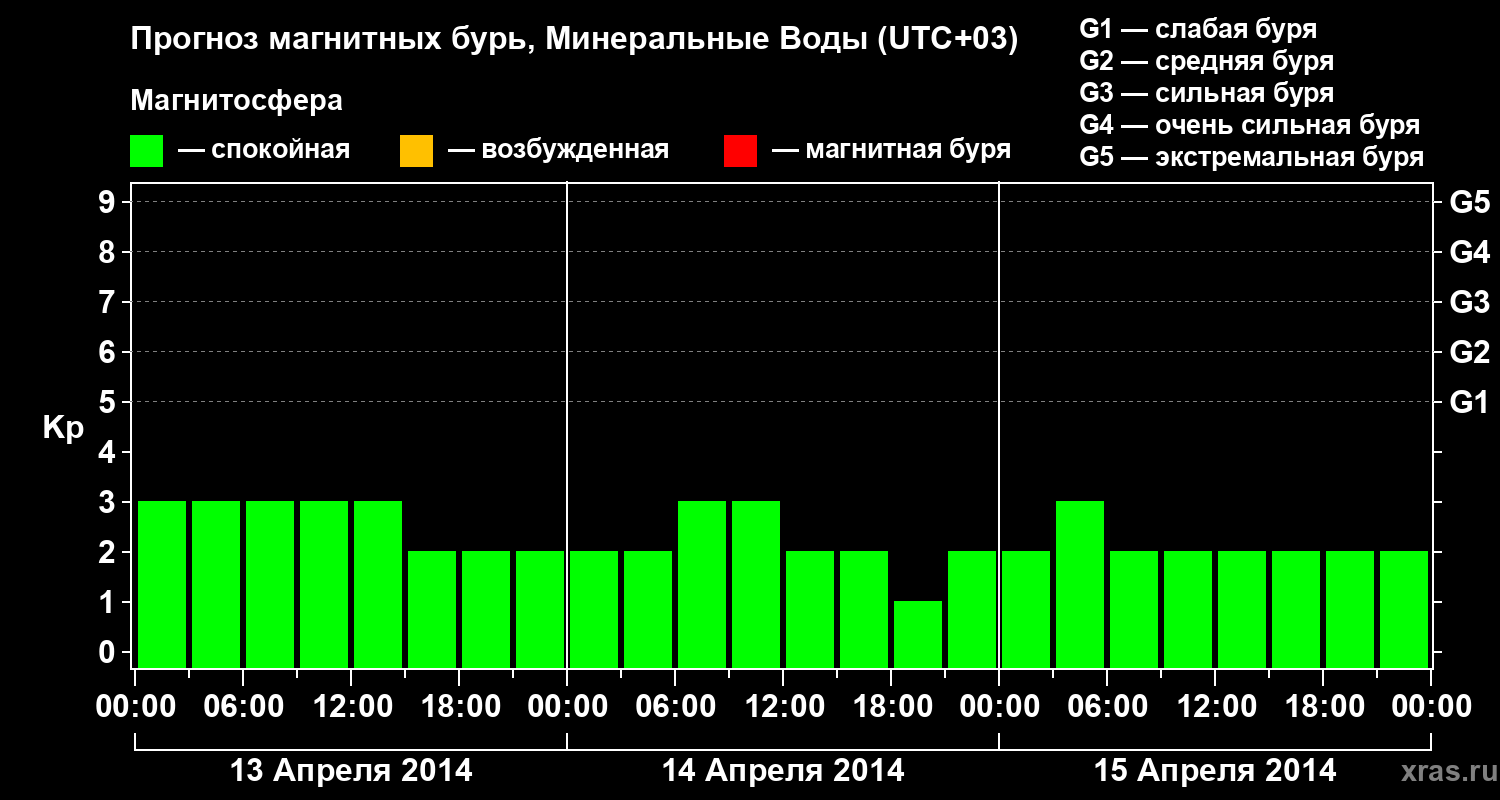 Прогноз магнитных бурь Минеральных Водах — 13 апреля 2014 года