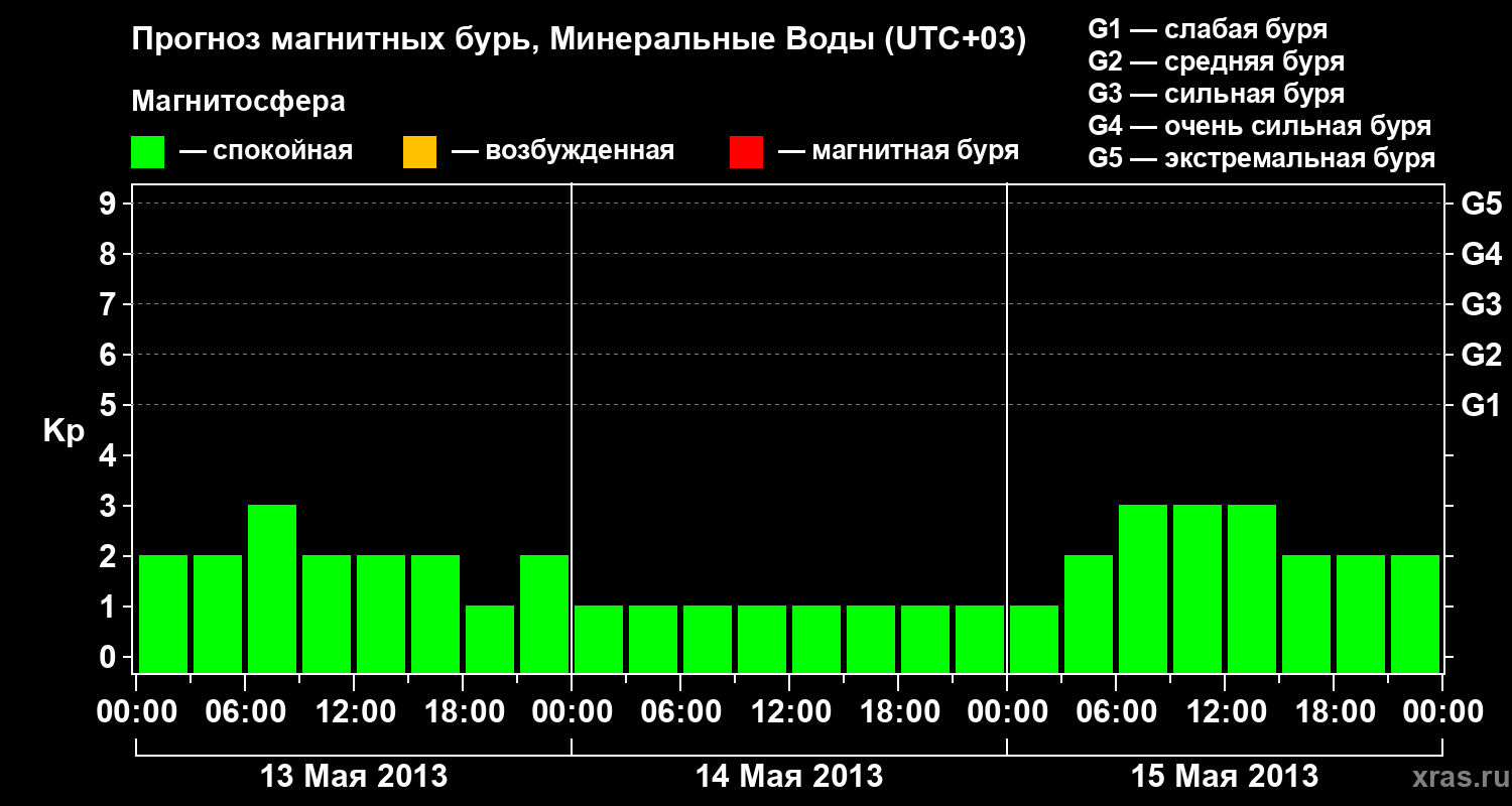 Прогноз магнитных бурь Минеральных Водах — 13 мая 2013 года