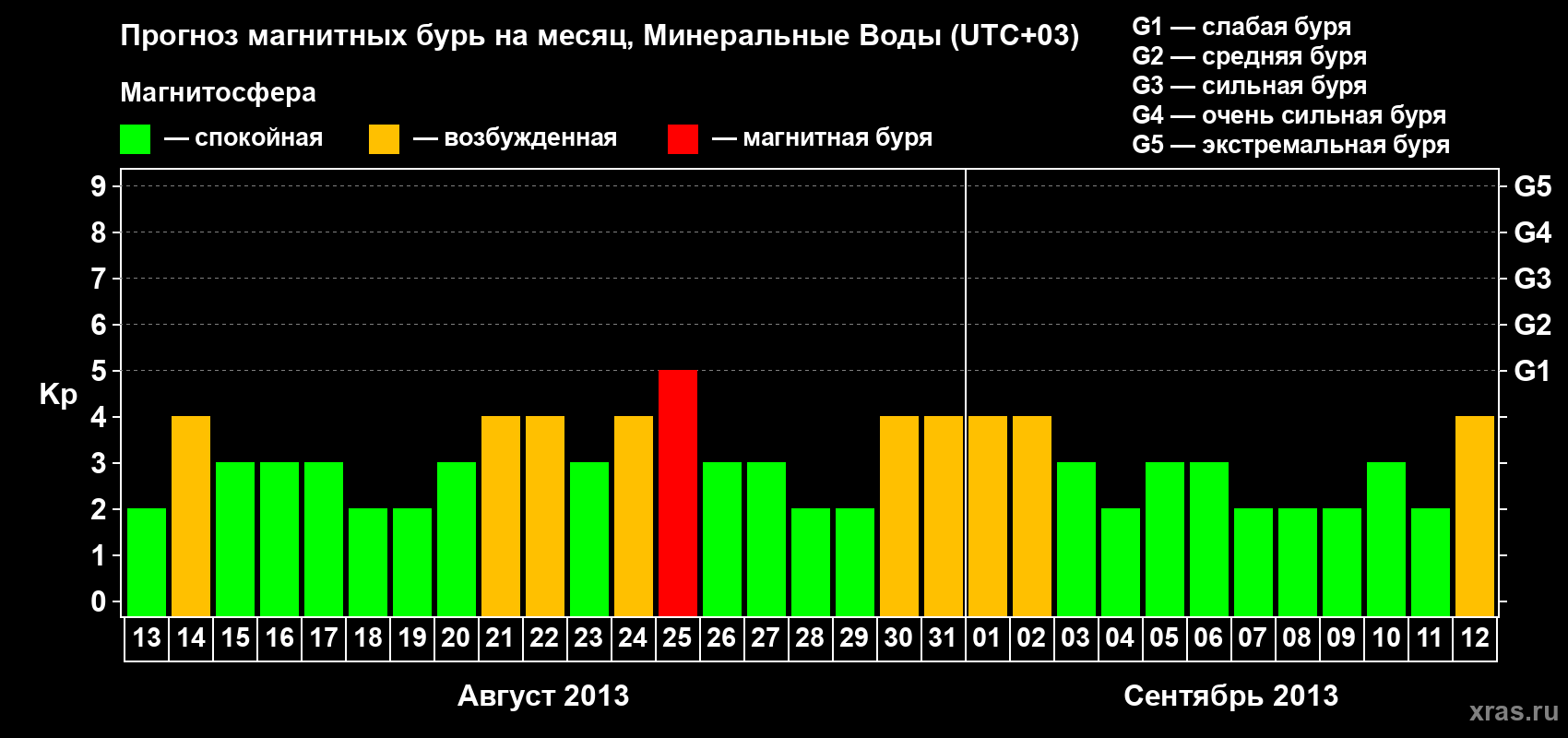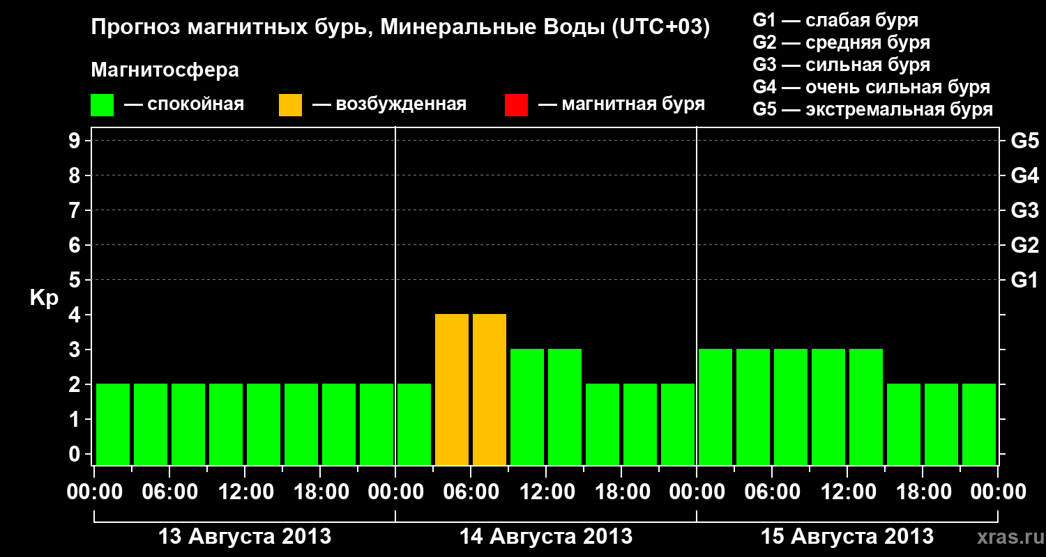 Прогноз магнитных бурь Минеральных Водах — 13 августа 2013 года