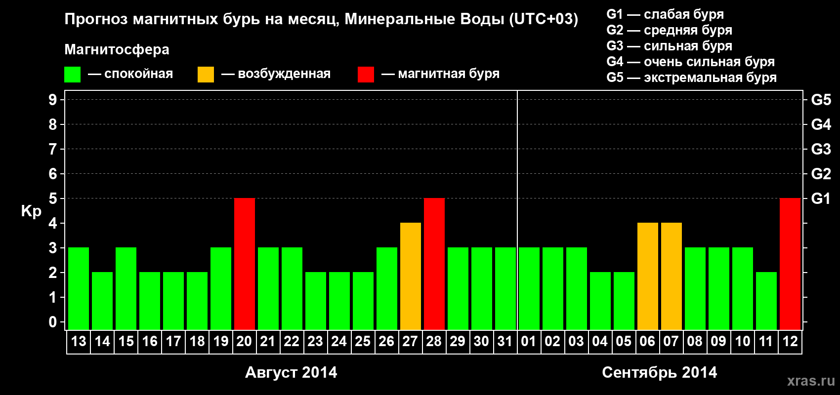 Прогноз магнитных бурь Минеральных Водах — 13 августа 2014 года