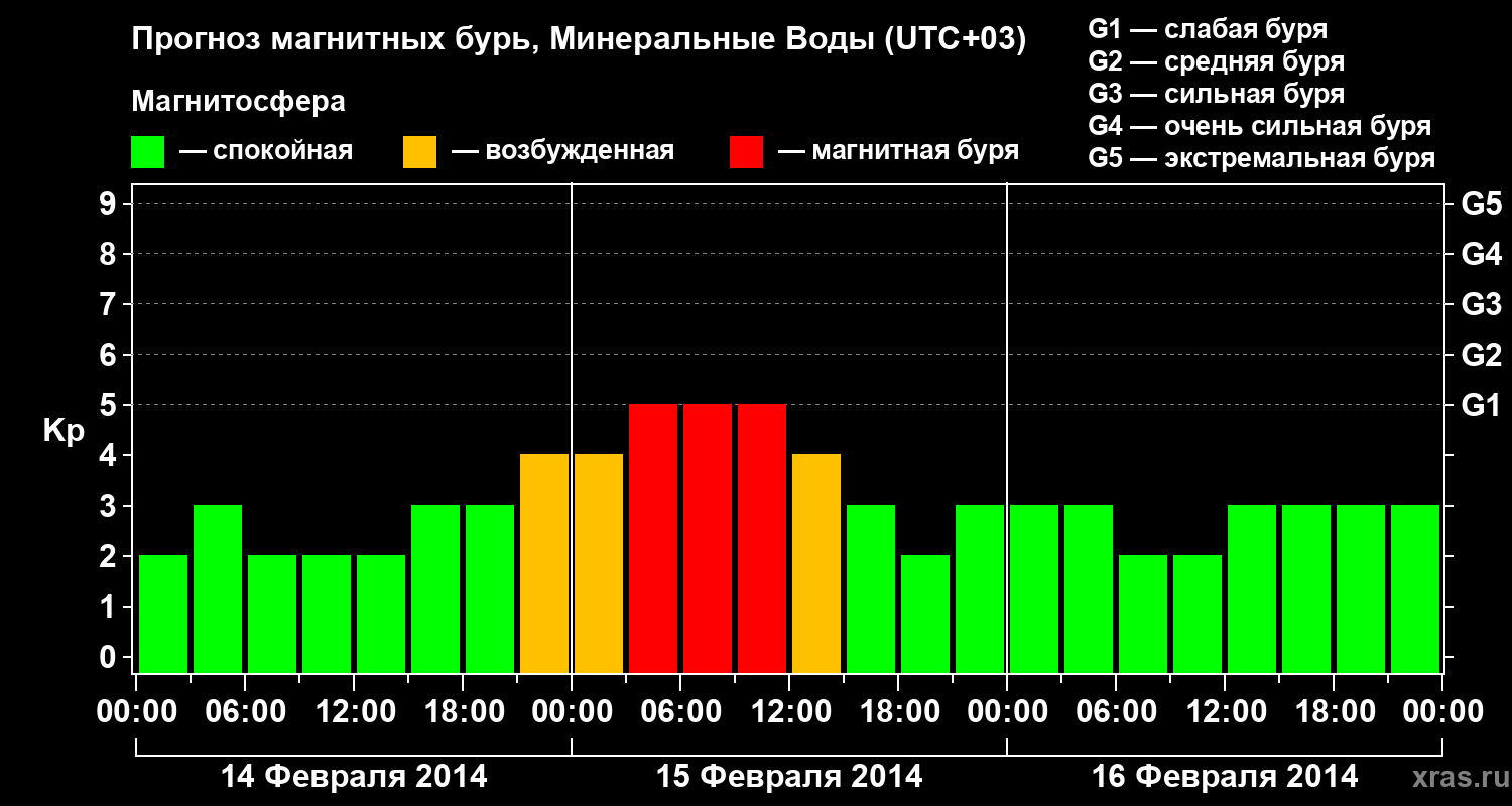 Прогноз магнитных бурь Минеральных Водах — 14 февраля 2014 года