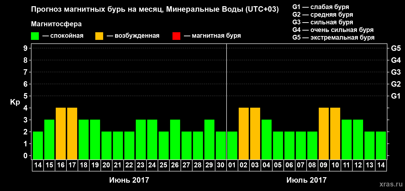 Прогноз магнитных бурь Минеральных Водах — 14 июня 2017 года