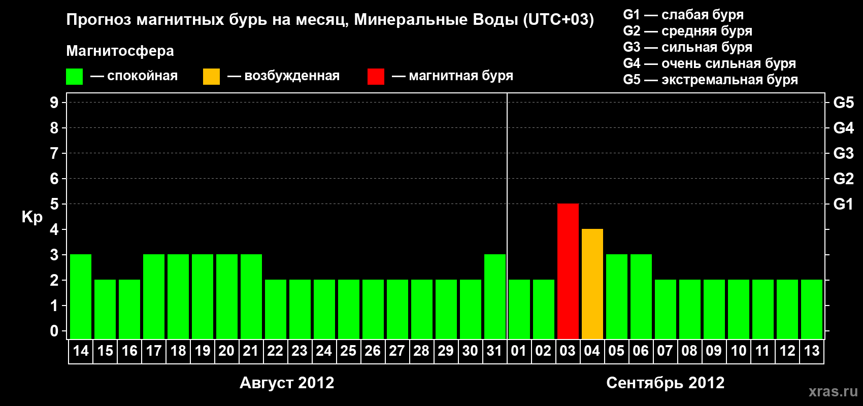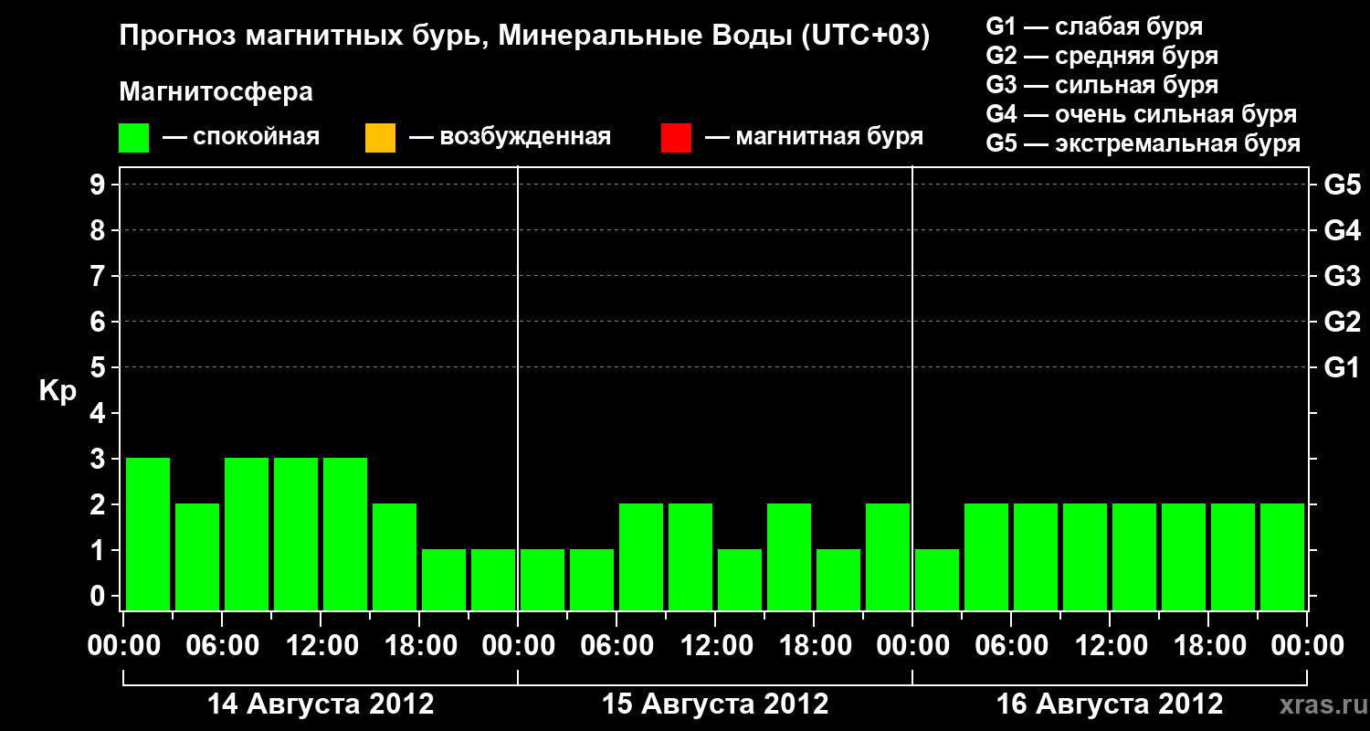 Прогноз магнитных бурь Минеральных Водах — 14 августа 2012 года
