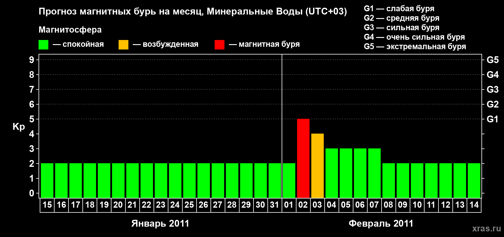 Прогноз магнитных бурь Минеральных Водах — 15 января 2011 года