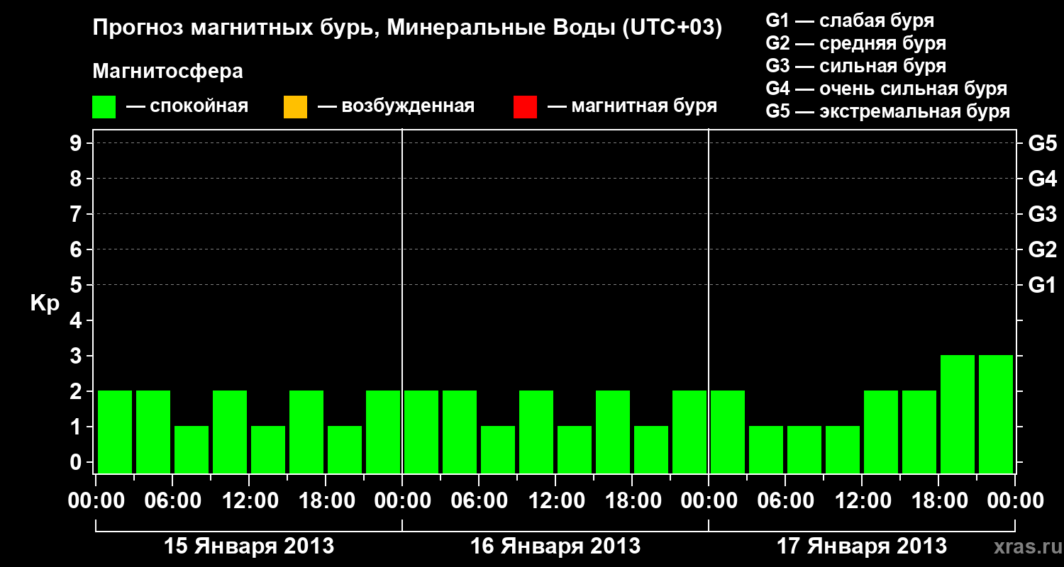 Прогноз магнитных бурь Минеральных Водах — 15 января 2013 года