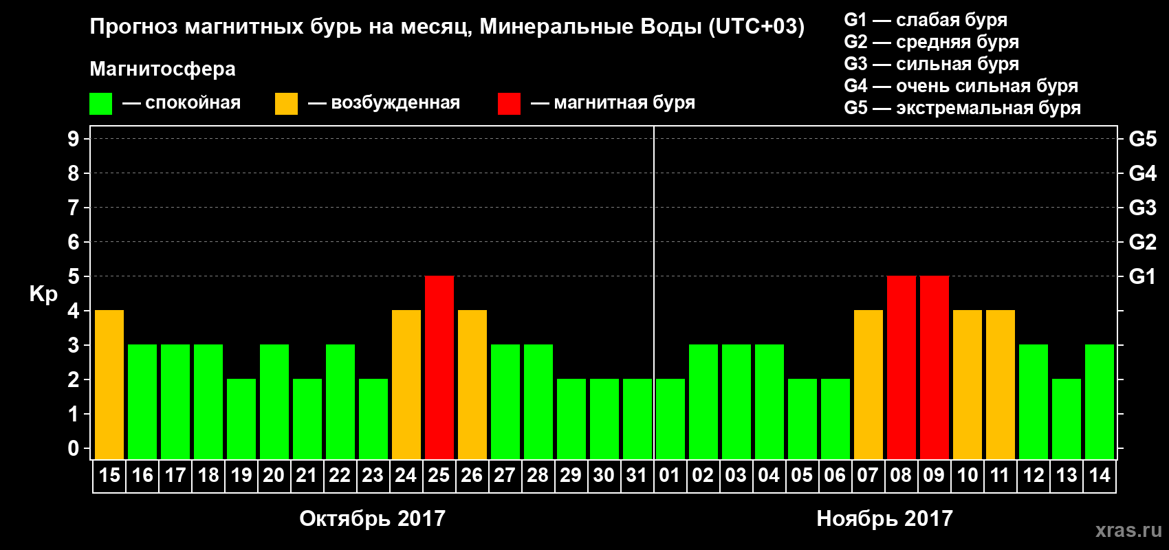 Прогноз магнитных бурь Минеральных Водах — 15 октября 2017 года