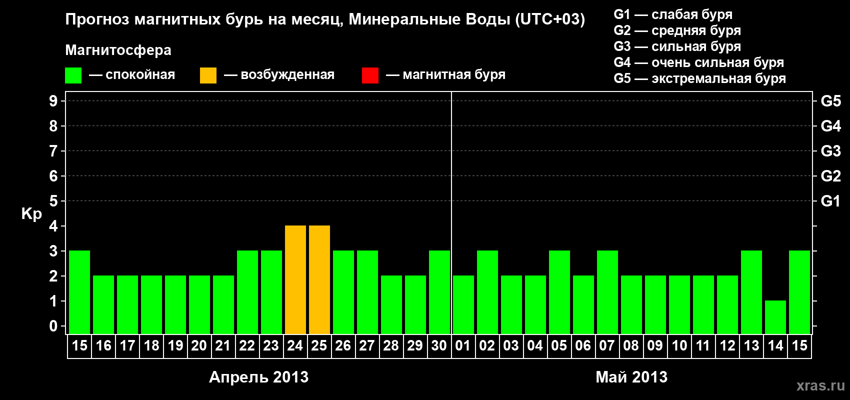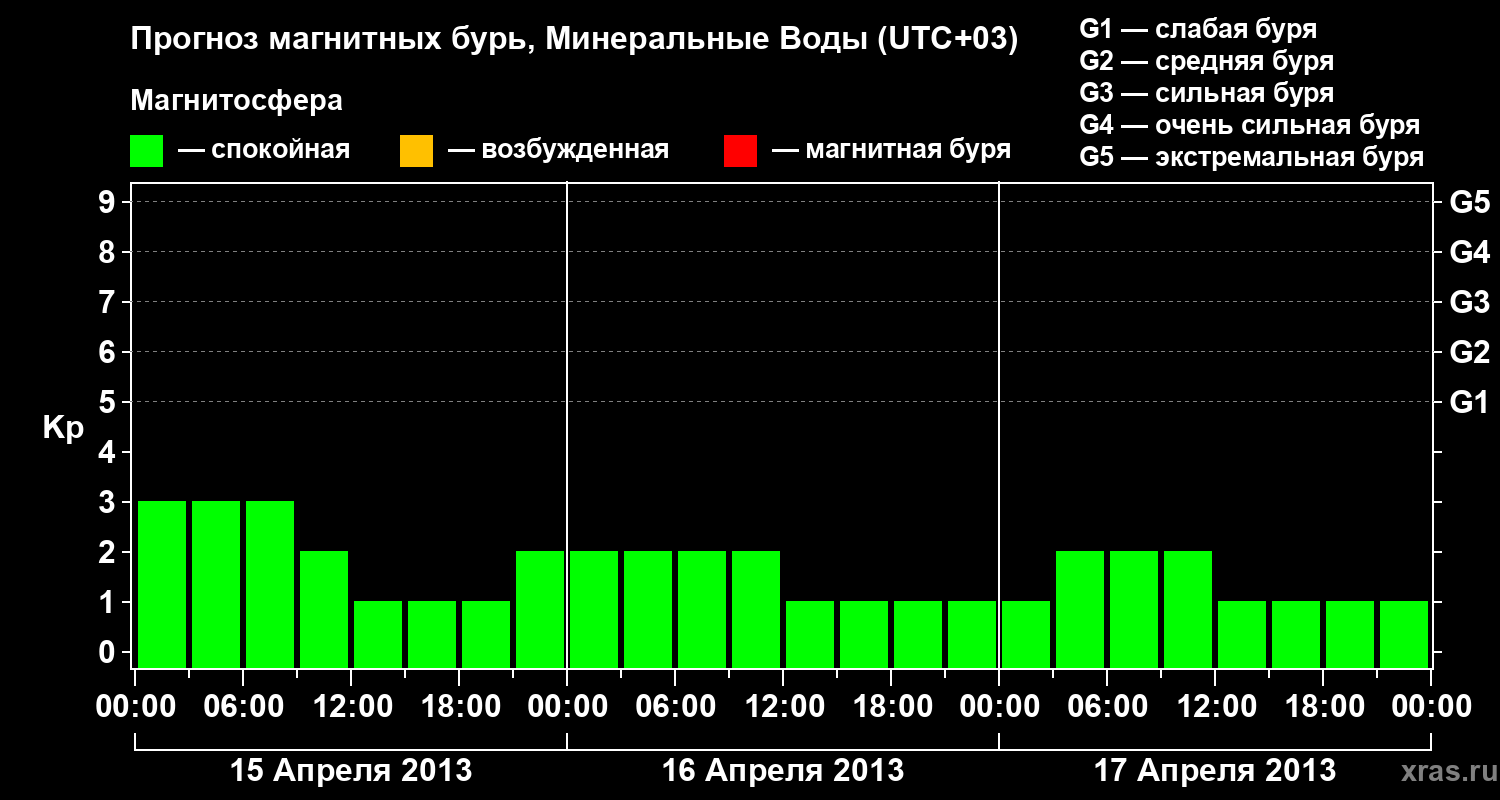Прогноз магнитных бурь Минеральных Водах — 15 апреля 2013 года