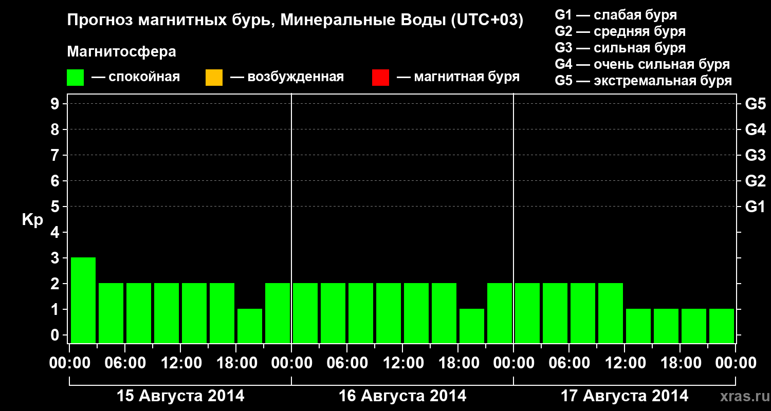 Прогноз магнитных бурь Минеральных Водах — 15 августа 2014 года