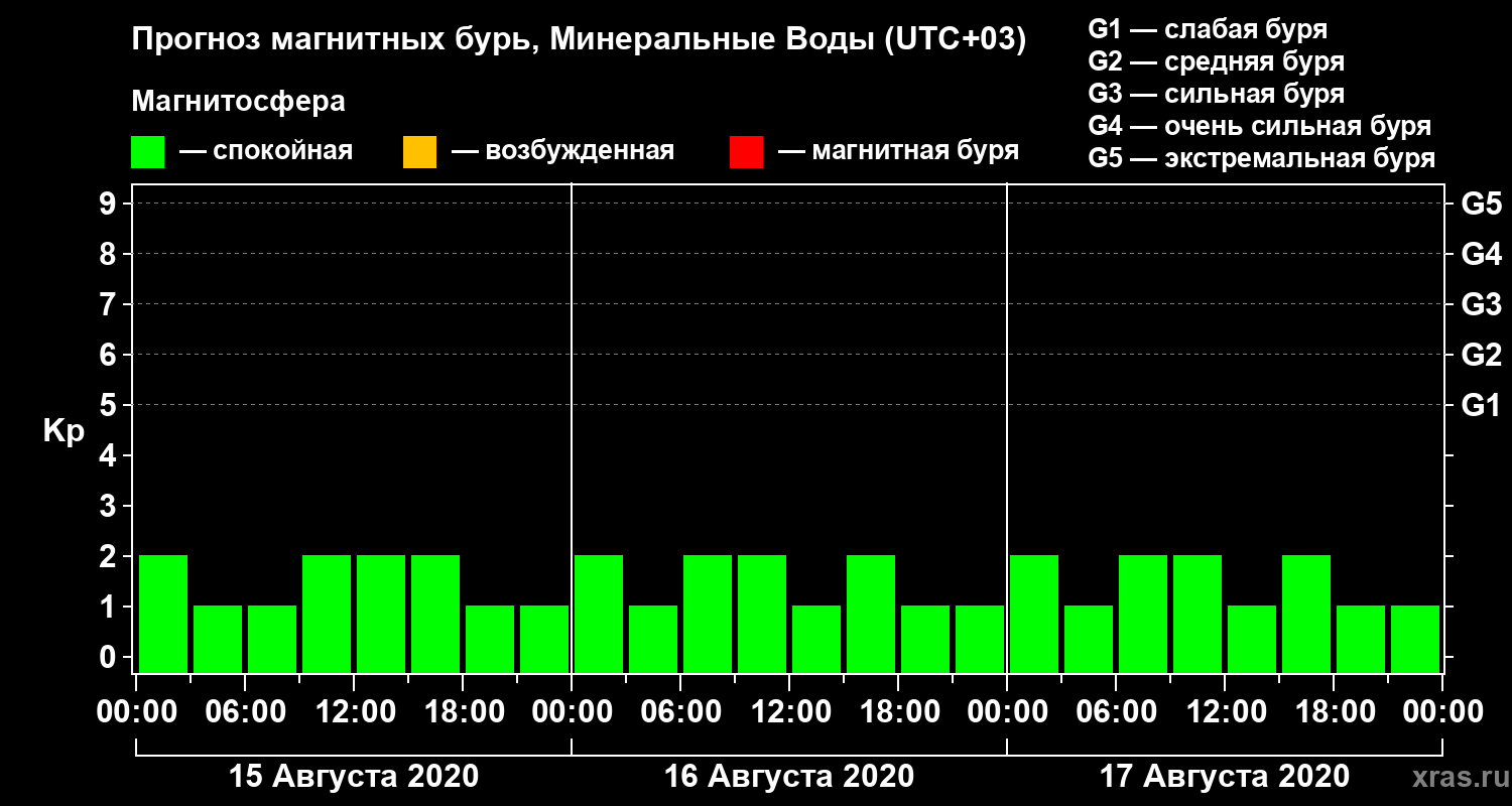 Прогноз магнитных бурь Минеральных Водах — 15 августа 2020 года