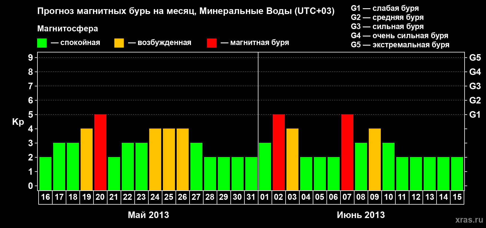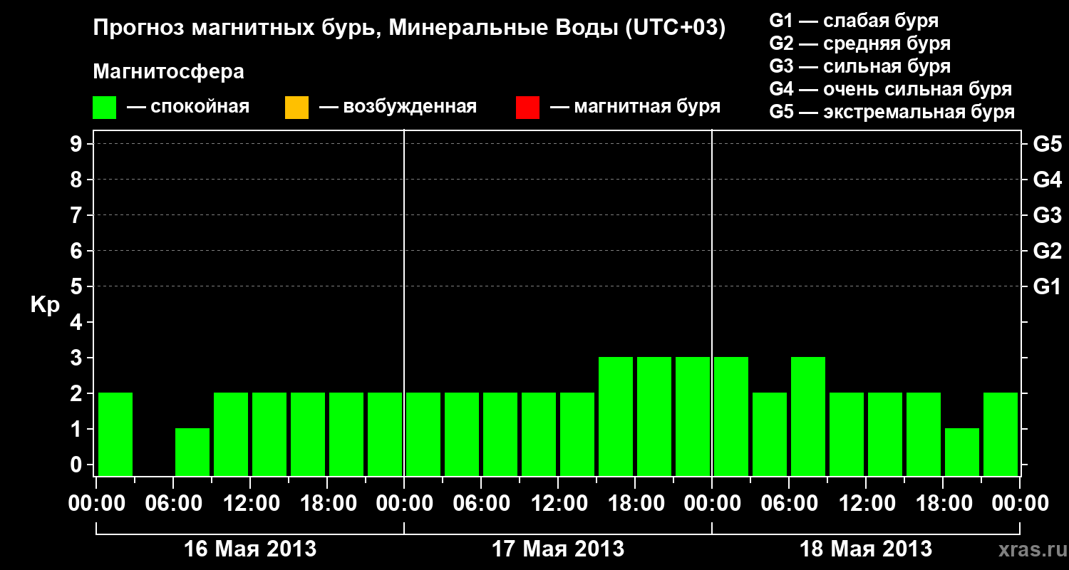 Прогноз магнитных бурь Минеральных Водах — 16 мая 2013 года