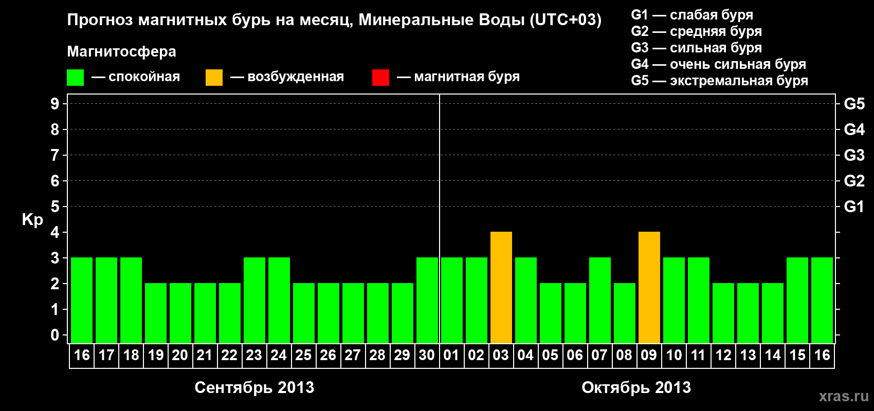 Прогноз магнитных бурь Минеральных Водах — 16 сентября 2013 года