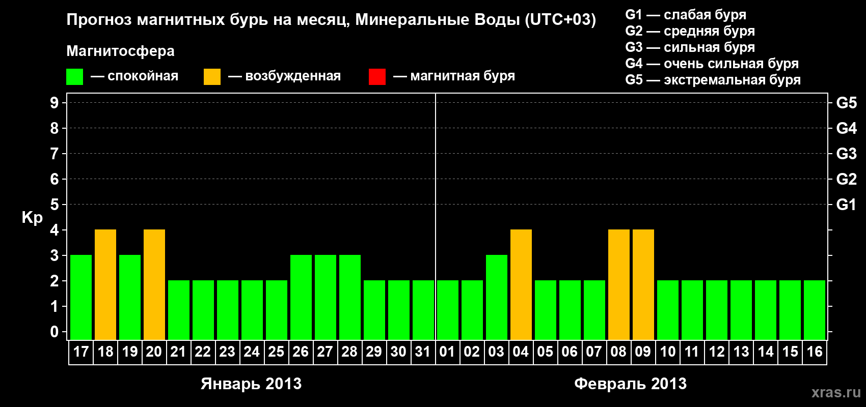 Прогноз магнитных бурь Минеральных Водах — 17 января 2013 года