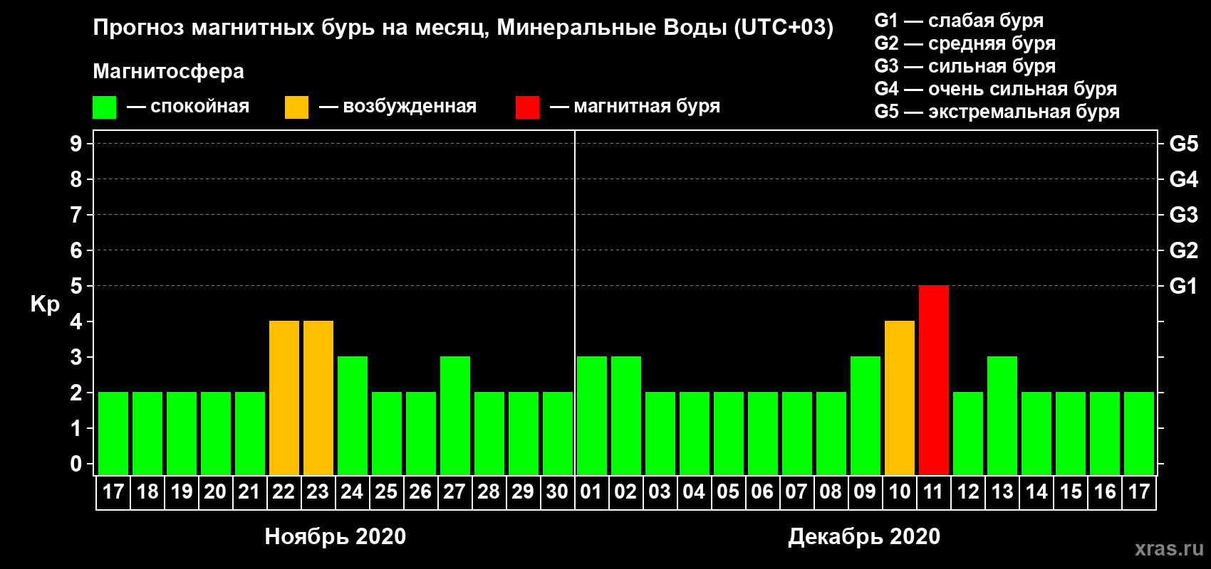 Прогноз магнитных бурь Минеральных Водах — 17 ноября 2020 года