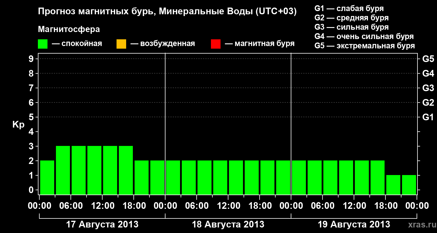 Прогноз магнитных бурь Минеральных Водах — 17 августа 2013 года