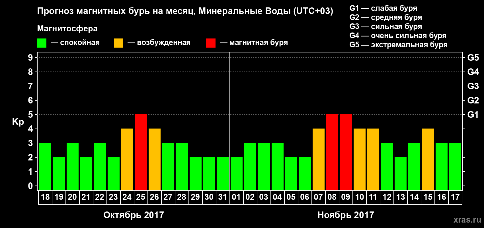Прогноз магнитных бурь Минеральных Водах — 18 октября 2017 года