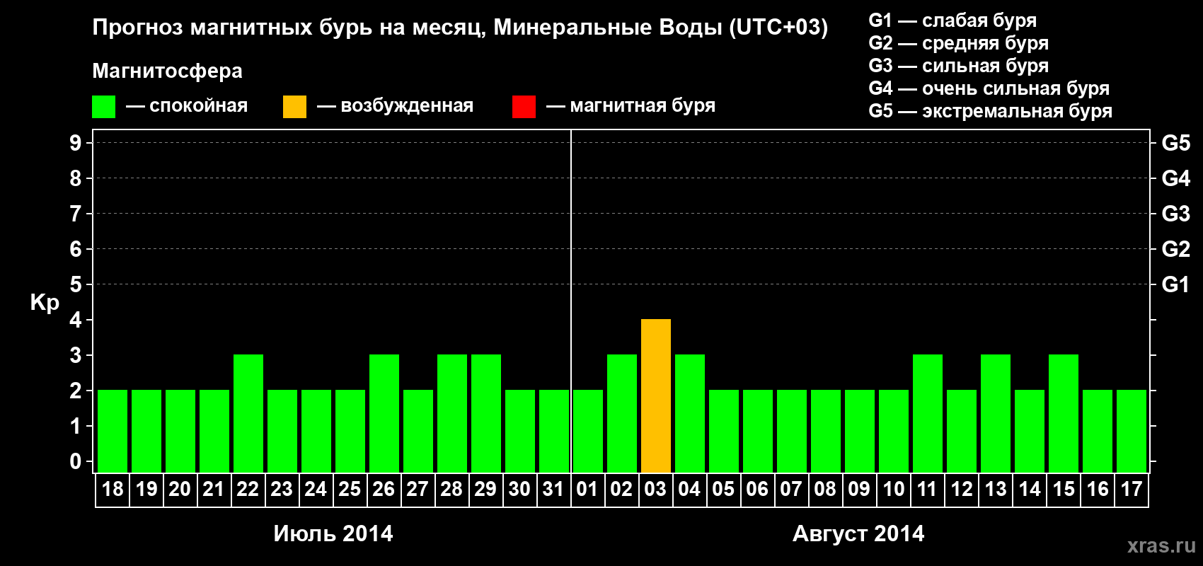 Прогноз магнитных бурь Минеральных Водах — 18 июля 2014 года