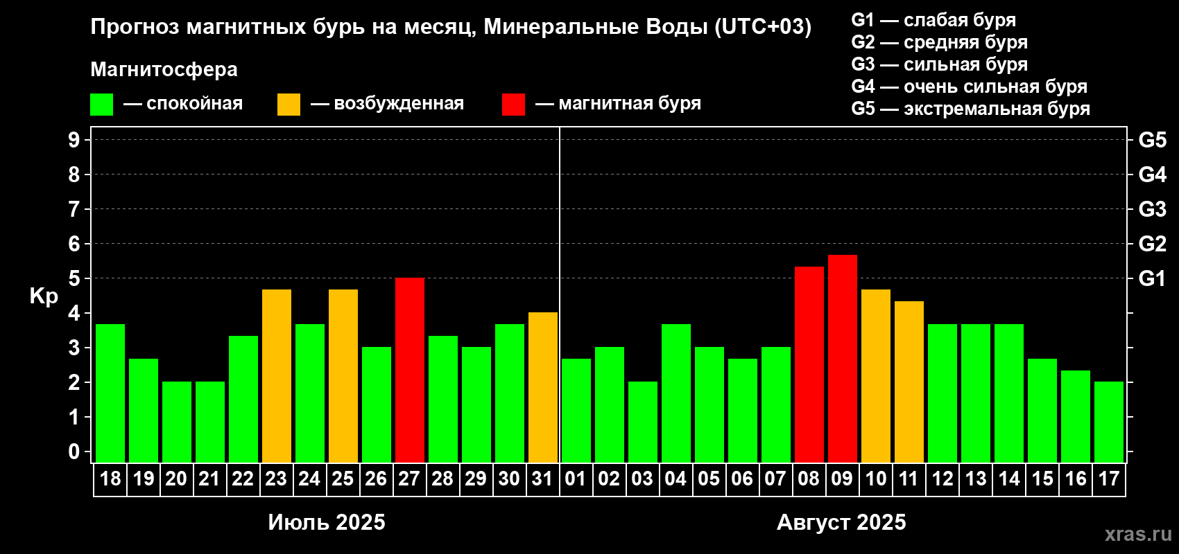 Прогноз магнитных бурь Минеральных Водах — 18 июля 2025 года