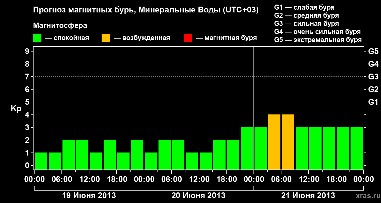 Прогноз магнитных бурь Минеральных Водах — 19 июня 2013 года