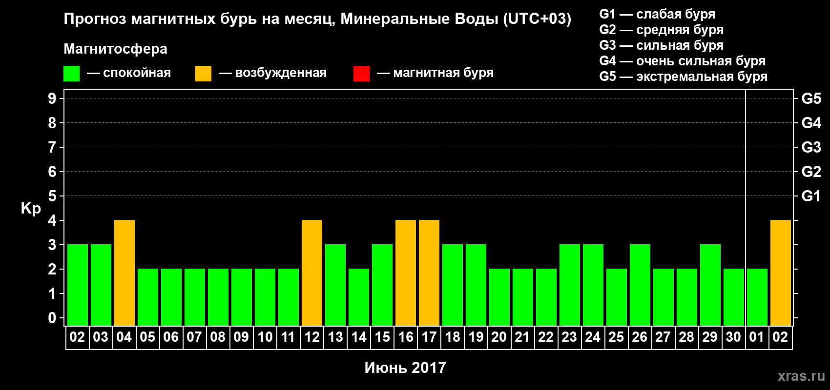 Прогноз магнитных бурь Минеральных Водах — 2 июня 2017 года