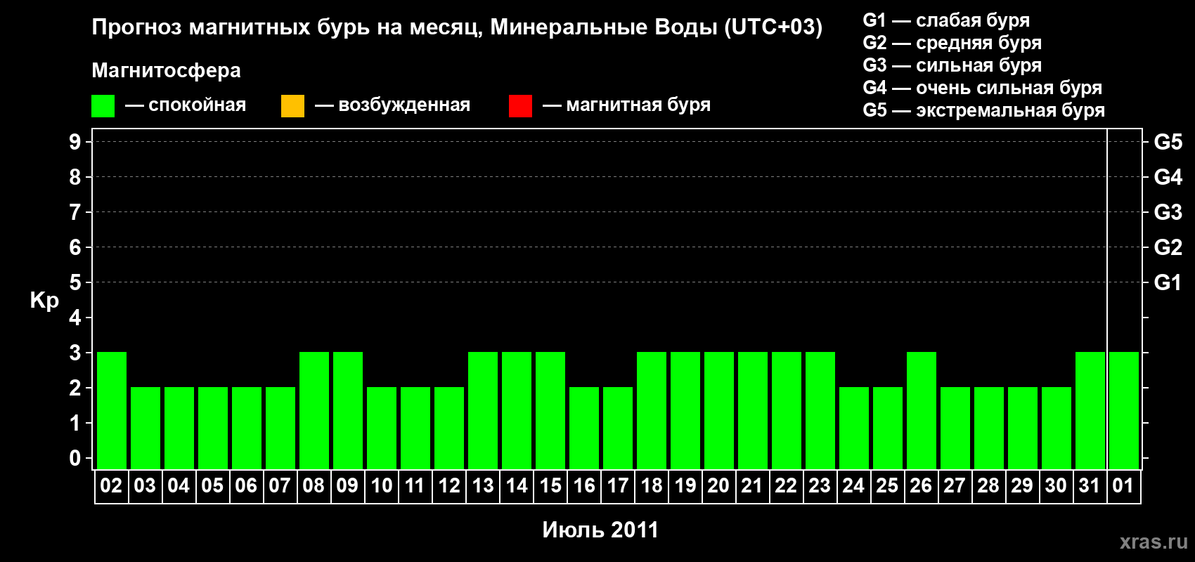 Прогноз магнитных бурь Минеральных Водах — 2 июля 2011 года