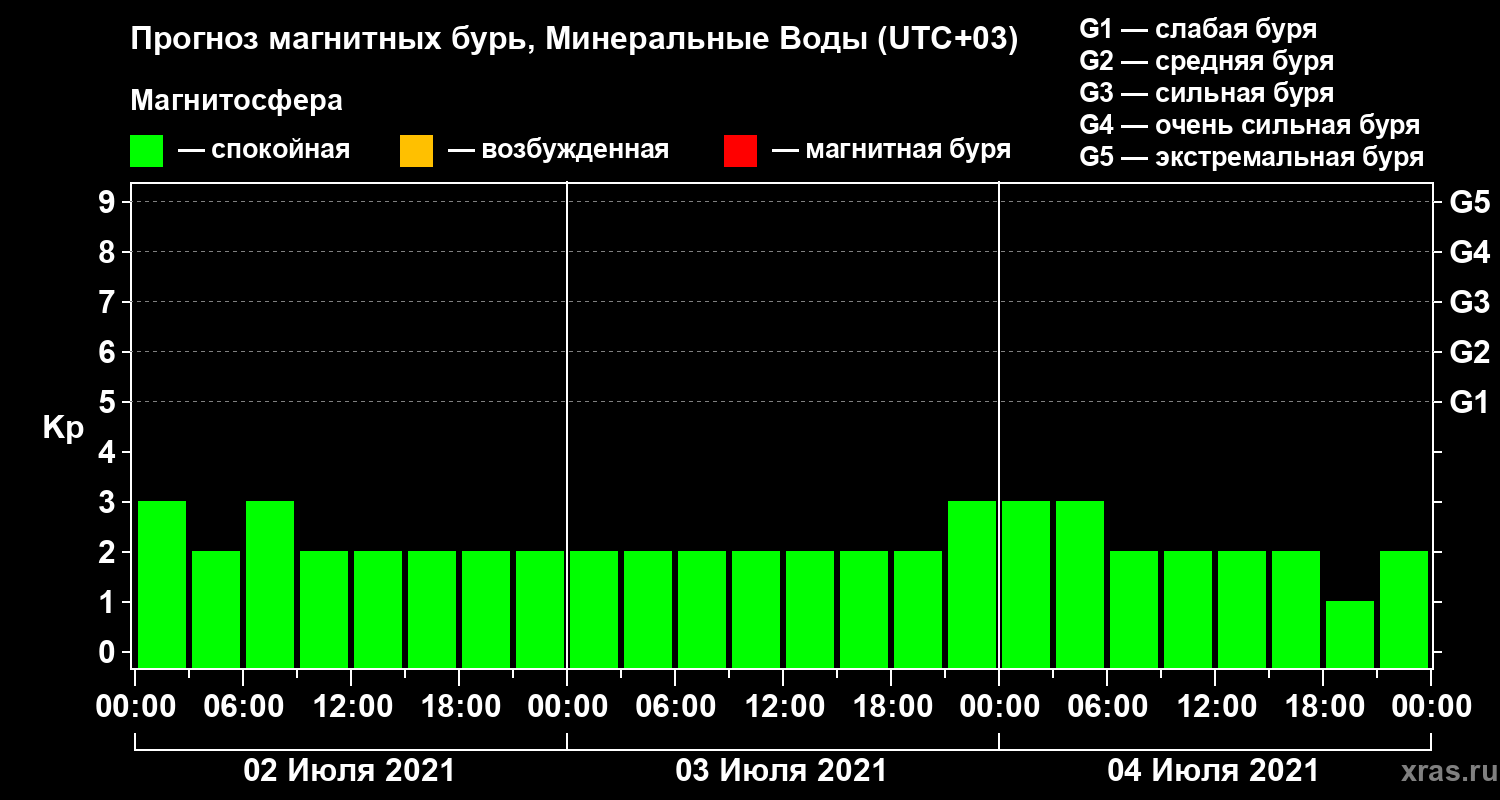 Прогноз магнитных бурь Минеральных Водах — 2 июля 2021 года