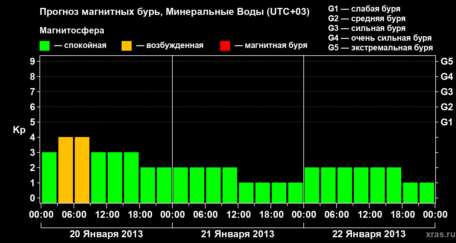 Прогноз магнитных бурь Минеральных Водах — 20 января 2013 года